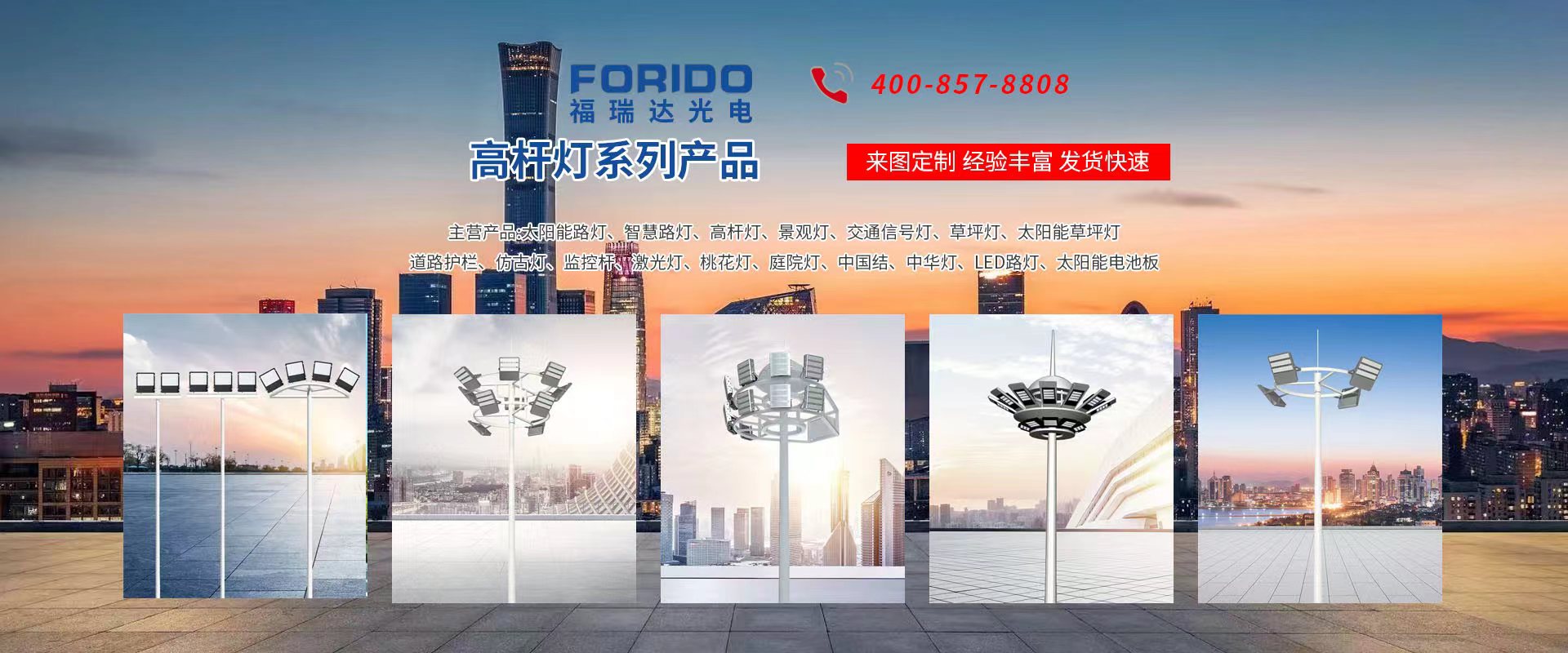 揚(yáng)州福瑞達(dá)光電科技有限公司位于淮左名都?xì)v史文化名城、中國路燈制造基地?fù)P州市北郊菱塘工業(yè)園,公司占地面積76000平方米,注冊資金10518萬元,擁有高級(jí)技術(shù)嫻熟的員工280多人,擁有大型折彎機(jī)、激光切割、數(shù)控注塑機(jī)、壓鑄機(jī)、自動(dòng)埋弧焊、氣焊、彩色粉末靜電噴塑等大型自動(dòng)化設(shè)備,我公司是一家集設(shè)計(jì)、研發(fā)、生產(chǎn)、銷售、施工安裝服務(wù)為一體的戶外交通照明產(chǎn)品制造商,主要生產(chǎn)智慧路燈、太陽能路燈、LED路燈、高桿燈、景觀燈、交通信號(hào)燈、交通標(biāo)志牌、通信鐵塔、路跨鋼結(jié)構(gòu)、公交站臺(tái)、太陽能光伏組件、景點(diǎn)亮化、樓宇亮化工程的設(shè)計(jì)施工等。公司秉承開拓創(chuàng)新、銳意進(jìn)取、精誠服務(wù)的企業(yè)精神,堅(jiān)持以“誠信為本、技術(shù)為先、服務(wù)是金”的合作理念,我們憑借先進(jìn)的制造工藝、優(yōu)質(zhì)的產(chǎn)品質(zhì)量、合理的市場價(jià)格和完善的售后服務(wù)贏得了廣闊的市場和客戶的信賴。 我公司已通過ISO9001質(zhì)量體系認(rèn)證、ISO14001環(huán)境管理體認(rèn)證,CQC產(chǎn)品認(rèn)證,中國節(jié)能產(chǎn)品認(rèn)證,通過“CCC”強(qiáng)制性產(chǎn)品認(rèn)證,具有市政總承包,照明,交安,設(shè)計(jì)等資質(zhì)···
